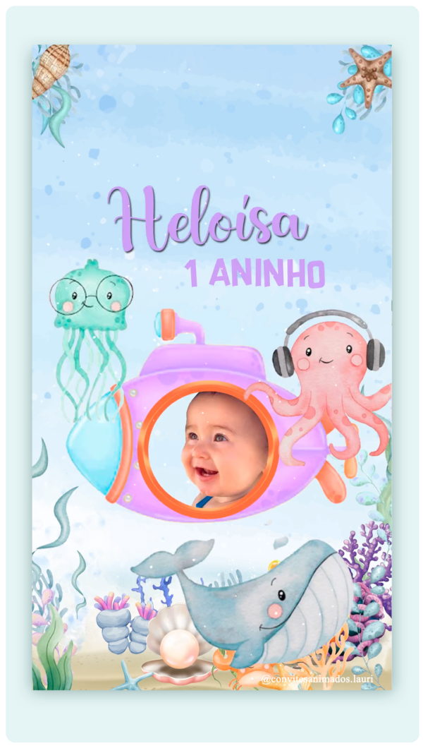 Convite Animado Fundo do Mar Aquarela Menina