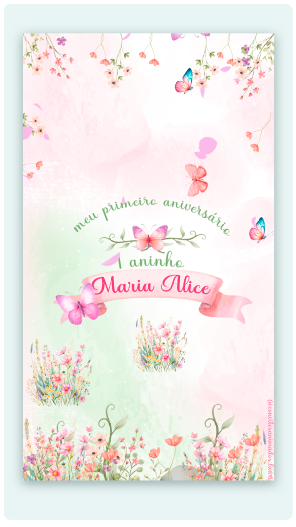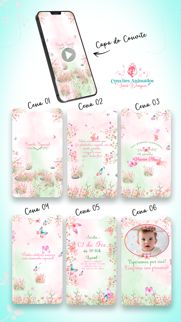 ✔️ Animação personalizada com nome, idade, data, local e horário