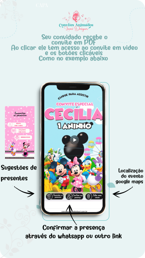 ✔️ Animação personalizada com nome, idade, data, local, horário e foto