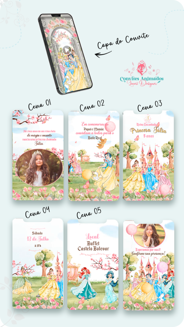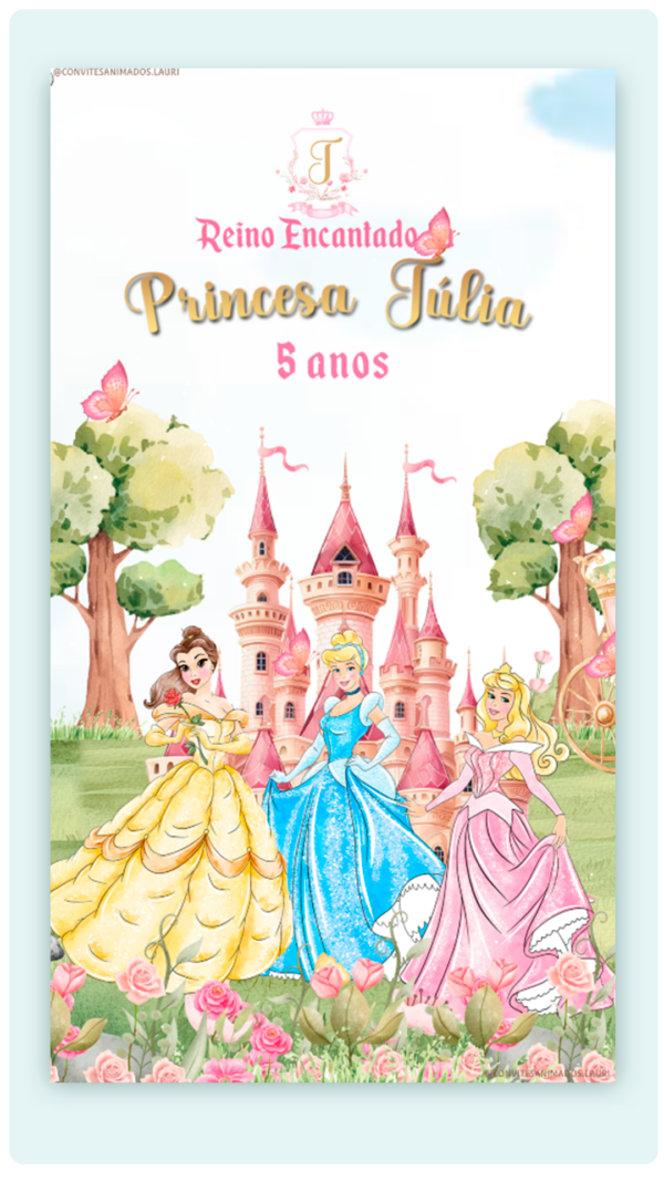 Convite Animado Reino Encantado das Princesas Disney