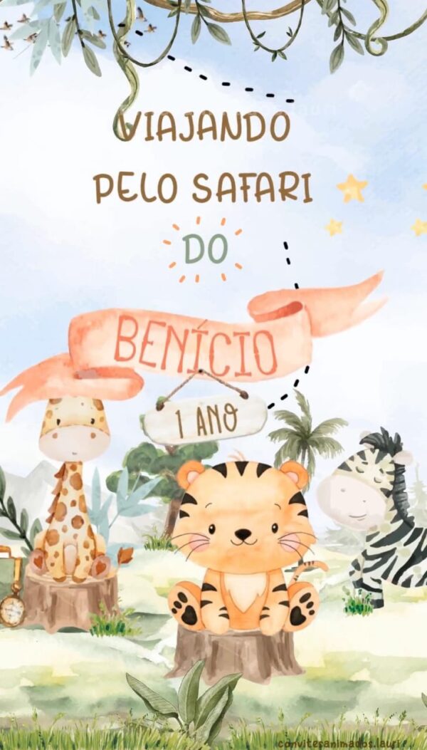 Convite Animado Viajando pelo Safari Aquarela