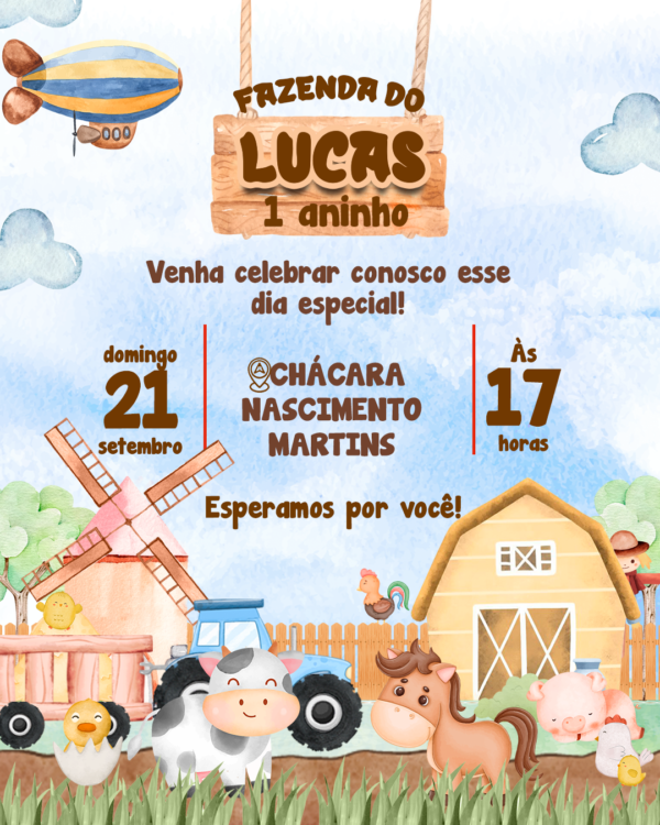Convite Digital Fazendinha Aquarela