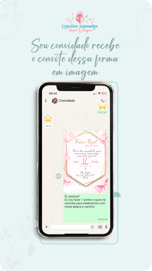Receba o convite finalizado no WhatsApp com todo carinho!
