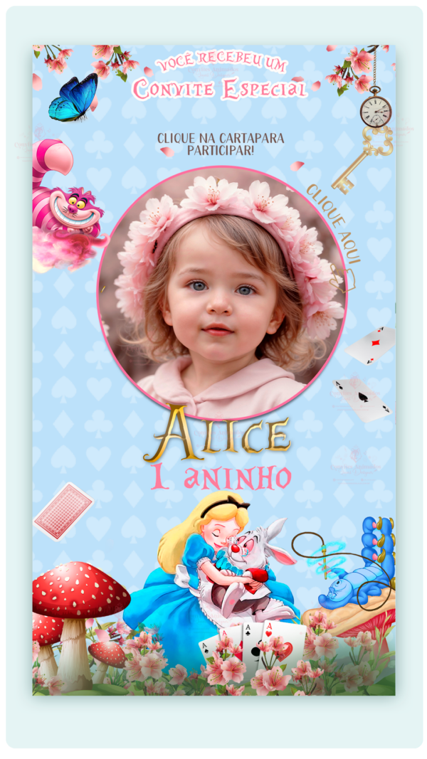 Convite Interativo e Animado Alice no País das Maravilhas 01 (com botões clicáveis e capa pdf)