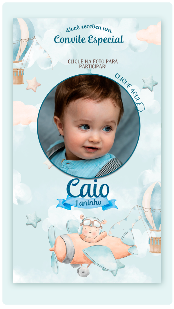 Convite Interativo e Animado Ursinho Aviador, Tempo Voa (com capa em pdf, e botões clicaveis)