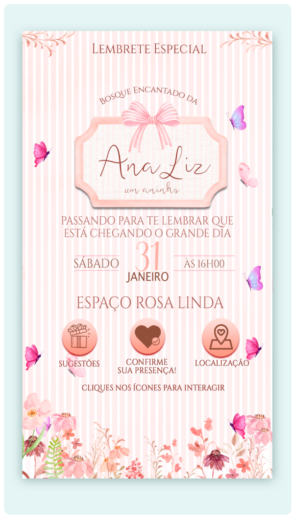 Seja o primeiro a avaliar “Kit Convite Animado + Lembrete Interativo Bosque das Borboletas”