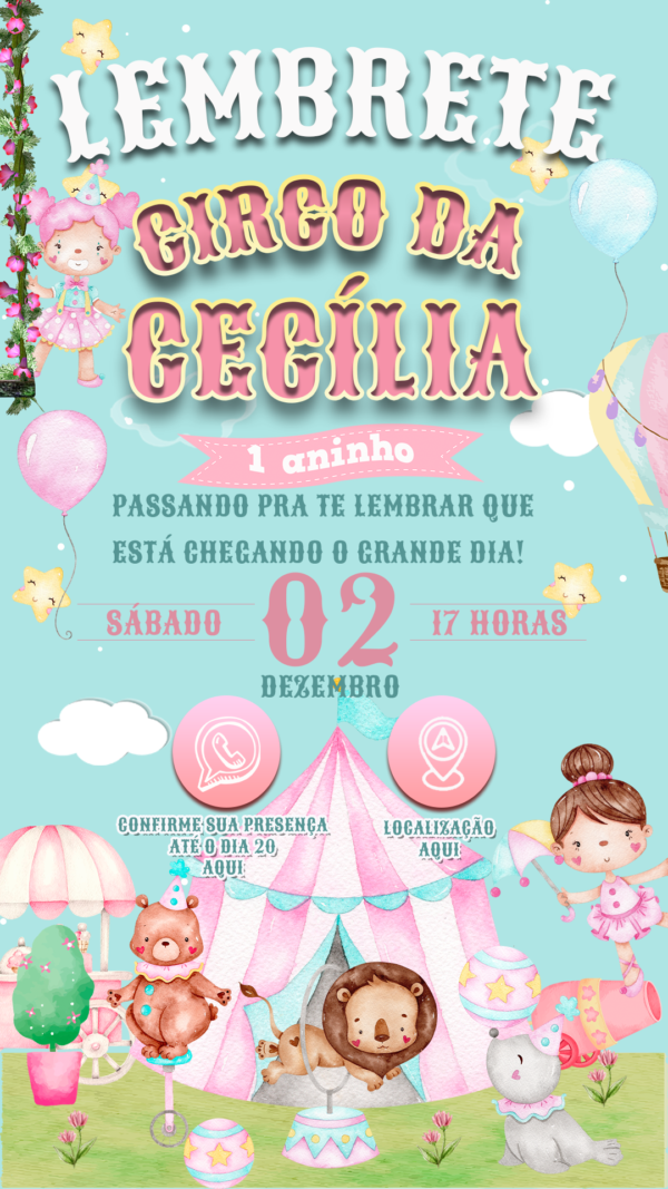 ✔️ Animação personalizada com nome, idade, data, local, horário e foto